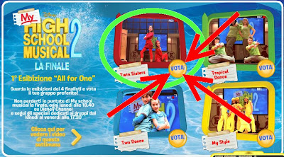 Votate le due gemelline di Latina che gareggiano per le finali di MY HIGH SCHOOL MUSICAL 2, programma di Disney channel. Sono brave e belle, ma sopratutto sono mie amiche, quindi fate lo sforzo di andare a votarle... non serve neanche l'iscrizione!!!!!